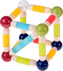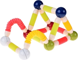 - 36 elementów – 22 elastyczne rurki i 14 magnetycznych kulek.
