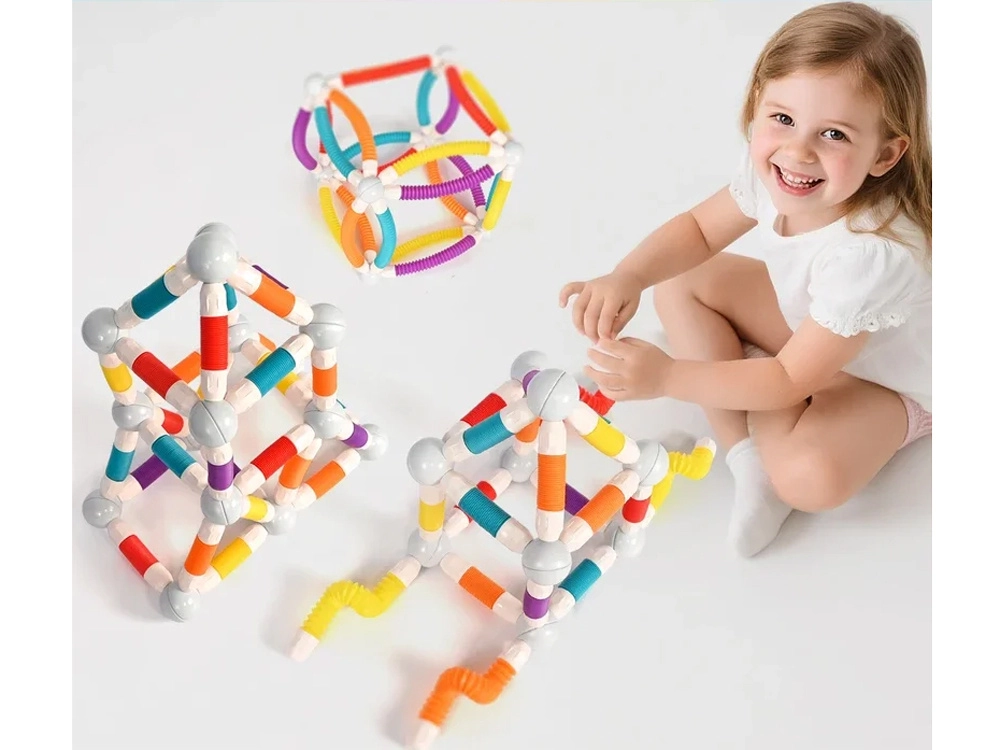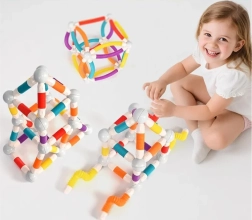 Ta innowacyjna magnetyczna układanka z elastycznych rurek i solidnych kulek zapewnia dzieciom godziny kreatywnej zabawy i nauki. Elementy łatwo się przyciągają dzięki magnesom, a dzięki giętkości rurek można tworzyć stabilne i dynamiczne modele 3D – od prostych kształtów po pomysłowe konstrukcje.