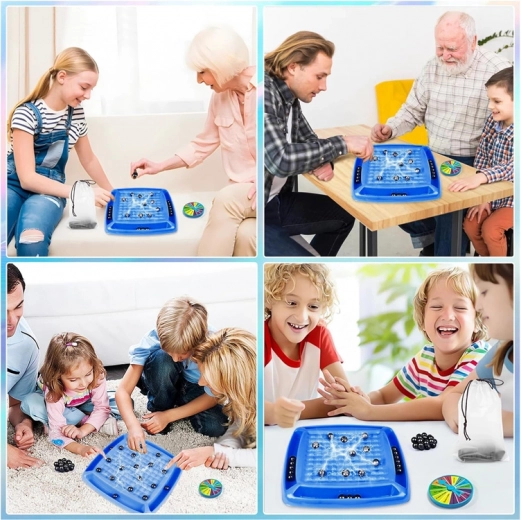 Odkryj wciągające logiczne wyzwanie, w którym liczy się strategia, pewna ręka i odrobina szczęścia. Gracze naprzemiennie dokładają na planszę magnetyczne kulki – ale uwaga, jeden nieprzemyślany ruch może wywołać reakcję łańcuchową, która połączy kilka kulek i będziesz musiał je zabrać z powrotem. Wygrywa ten, kto jako pierwszy pozbędzie się wszystkich swoich kulek.