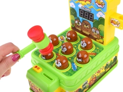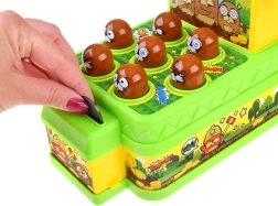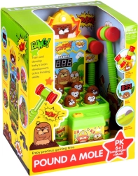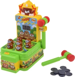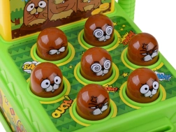 Odkryj rodzinną zabawę, która wciąga od pierwszego uderzenia. Na planszy losowo podświetla się 7 kretów – Twoim zadaniem jest jak najszybciej trafić miękkim gumowym młotkiem właśnie te podświetlone. Każde trafienie dodaje punkty, które widać na czytelnym wyświetlaczu. Gra rozwija motorykę małą, koordynację oraz szybkość reakcji.