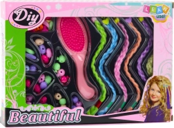 - Kompletny zestaw: kolorowe pasma, koraliki, szczotka