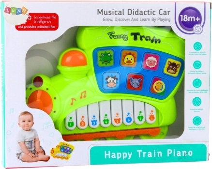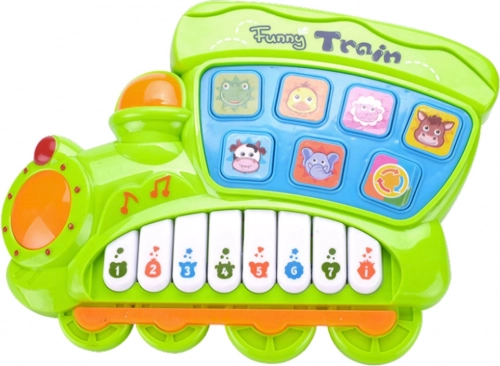 Wesołe dziecięce pianinko w kształcie lokomotywy zachwyci małych odkrywców muzyki już od 18 miesięcy. Oferuje 6 przycisków ze zwierzątkami, 8 klawiszy Do–Re–Mi–Fa–So–La–Ti–Do, zabawne dźwięki i melodie oraz bezpieczne wykonanie z zaokrąglonymi krawędziami. Kompaktowe wymiary czynią je idealną zabawką do domu i w podróż.