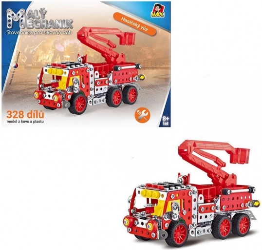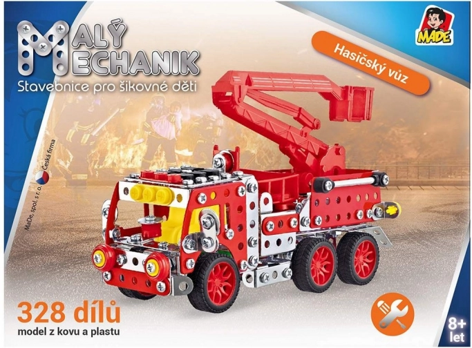 Zestaw konstrukcyjny Mały mechanik – wóz strażacki z podnośnikiem zapewnia dzieciom od 8 lat mądrą zabawę i pierwszy krok do świata techniki. Wspiera motorykę małą, kreatywność i sprawność manualną, uczy cierpliwości oraz rozwiązywania problemów. Metalowe i plastikowe elementy pozwalają złożyć wytrzymały model z podnośnikiem, z którym dzieci spędzą kolejne godziny świetnej zabawy.