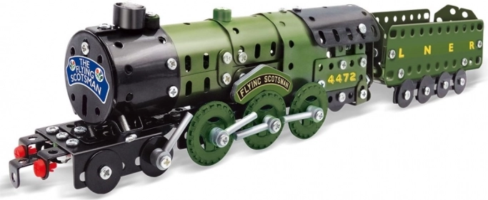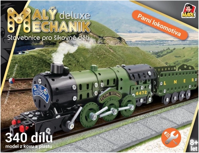 Zbuduj kultową parową lokomotywę z węglarką i poczuj radość z własnej konstrukcji. Zestaw Mały mechanik łączy solidne metalowe elementy z wytrzymałymi plastikowymi dodatkami i dzięki łączeniu na śrubki oraz nakrętki zapewnia realistyczne wrażenia z montażu. Gotowy model dostarczy mnóstwo zabawy także po złożeniu.