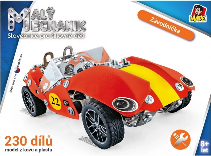 Mały mechanik – samochód wyścigowy z 230 elementami. Metalowe i plastikowe części, śrubki i nakrętki, narzędzia w zestawie. Rozwija kreatywność i motorykę dzieci od 8 lat.