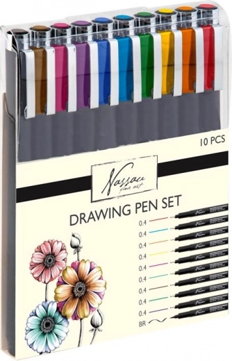 Odkryj uniwersalny zestaw cienkopisów do precyzyjnego pisania i rysowania. Ten zestaw 10 kolorowych linerów oferuje żywe kolory, cienką kreskę 0,4 mm oraz wytrzymałą końcówkę idealną do linijek, szablonów, szkicowania i projektów szkolnych.