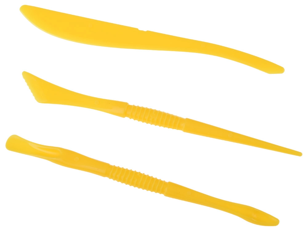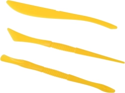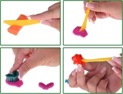 W zestawie znajdują się także 3 bezpieczne plastikowe nożyki do precyzyjnego odcinania nadmiaru i dopracowywania detali. Na opakowaniu znajdziesz przydatną kolorową ściągę, która podpowie, jakie barwy powstaną po połączeniu poszczególnych mas.