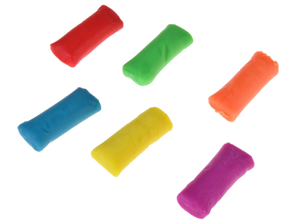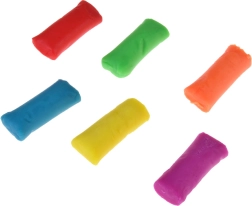 • 6 wyrazistych kolorów masy: zielony, niebieski, czerwony, fioletowy, żółty, pomarańczowy
