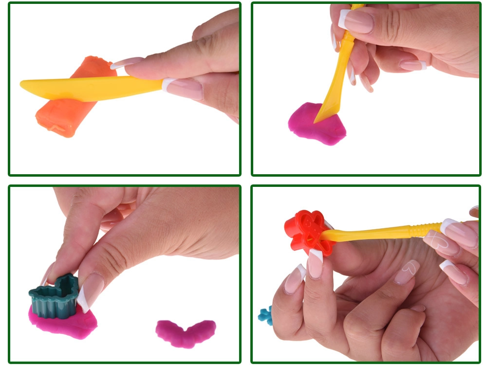 6 mas plastycznych, 10 foremek, 3 plastikowe nożyki