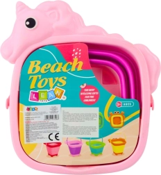 Spraw dzieciom radość wiadrem, które jest lekkie, wytrzymałe i gotowe na każdą przygodę nad wodą i w piasku. Składana konstrukcja umożliwia szybkie złożenie do płaskiej formy – idealnej do torby plażowej lub walizki. Różowy design z motywem jednorożca przyciąga wzrok i wspiera kreatywną zabawę.