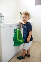 Praktyczny dziecięcy pisuar FreeON Żabka to świetny pomocnik do nauki korzystania z toalety dla chłopców od 6 miesięcy. Dzięki przyssawkom łatwo przymocujesz go do ściany, a jego regulowana wysokość dostosuje się do wzrostu dziecka. Obrotowy celownik motywuje do precyzyjnego celowania, a wyjmowany pojemnik zapewnia szybkie czyszczenie. Wytrzymałe tworzywo i zabawny design pomagają w szybszej adaptacji do samodzielnego korzystania z toalety.