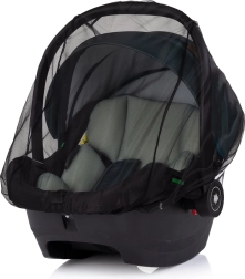 Łatwe zakładanie i zdejmowanie umożliwia elastyczny ściągacz, który dopasowuje się do różnych kształtów i rozmiarów fotelików samochodowych. Materiał jest delikatny dla skóry dziecka i łatwy w utrzymaniu. Dzięki kompaktowym wymiarom moskitiera zmieści się do każdej torby lub koszyka wózka.