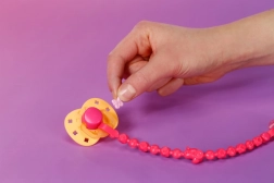 Specjalny smoczek można indywidualnie ozdobić przypinanymi dekoracjami (nie znajdują się w opakowaniu), aby każda lalka była wyjątkowa. Dodatkowo, w niektórych lalkach magiczny smoczek pomaga zamykać oczy, co czyni usypianie jeszcze bardziej realistycznym. Wszystko jest kompatybilne z lalkami w rozmiarze 43 cm.