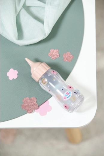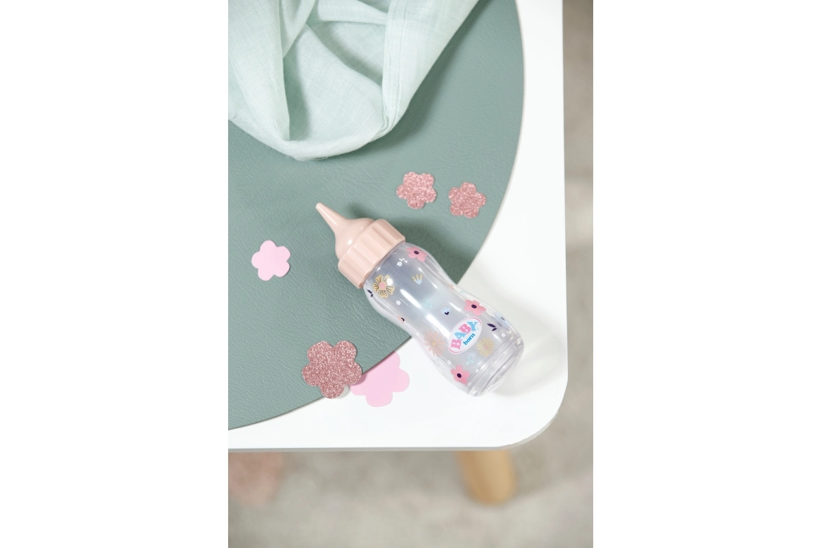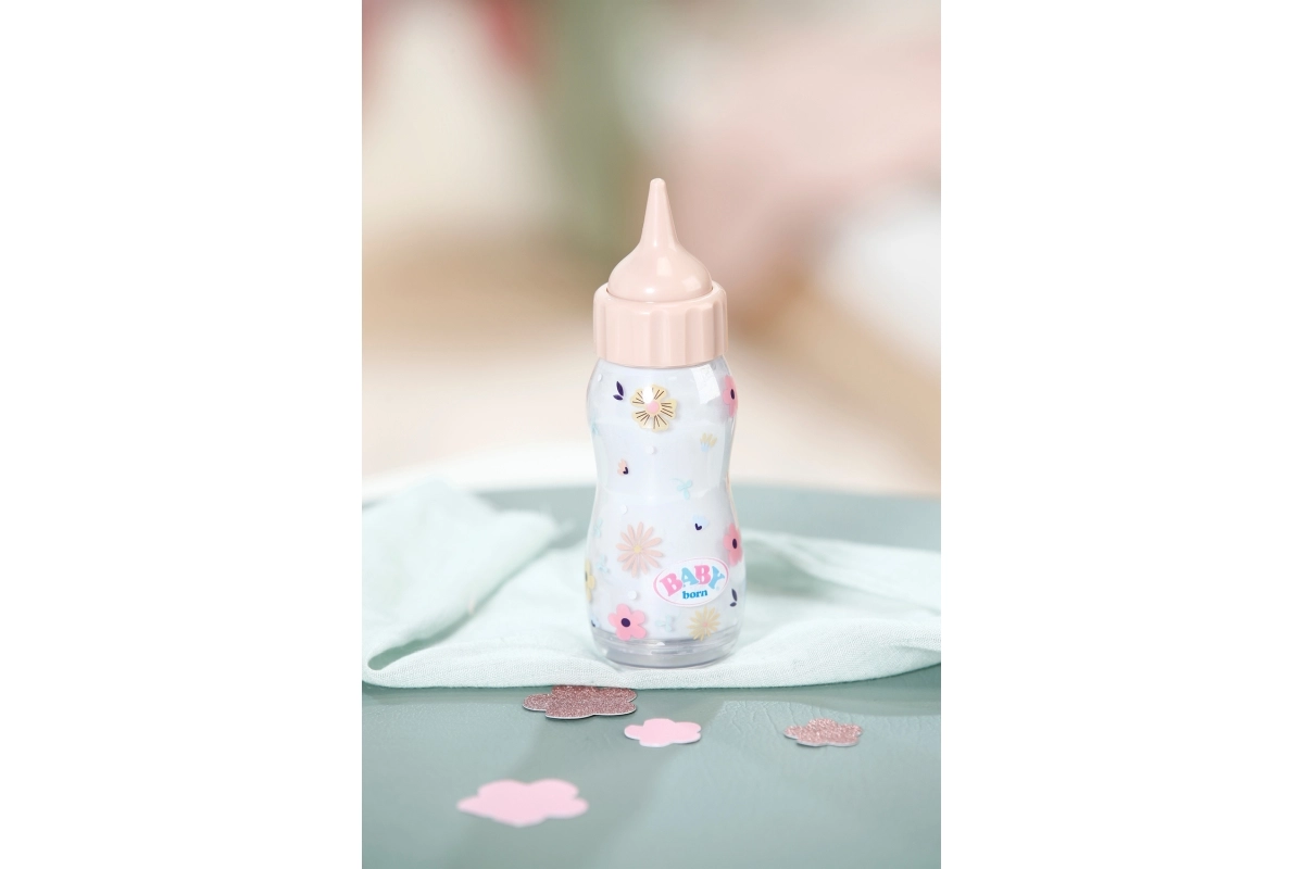 Interaktywna magiczna buteleczka BABY born z efektem znikającego płynu zamienia każde karmienie lalki w zabawną i realistyczną zabawę. Podczas „karmienia” zawartość znika, a po ustawieniu buteleczki ponownie w pozycji pionowej znowu się napełnia. Świetny dodatek do zabawy w opiekę, odtwarzania codziennych sytuacji i rozwijania wyobraźni. Odpowiednia dla dzieci od 1 roku.