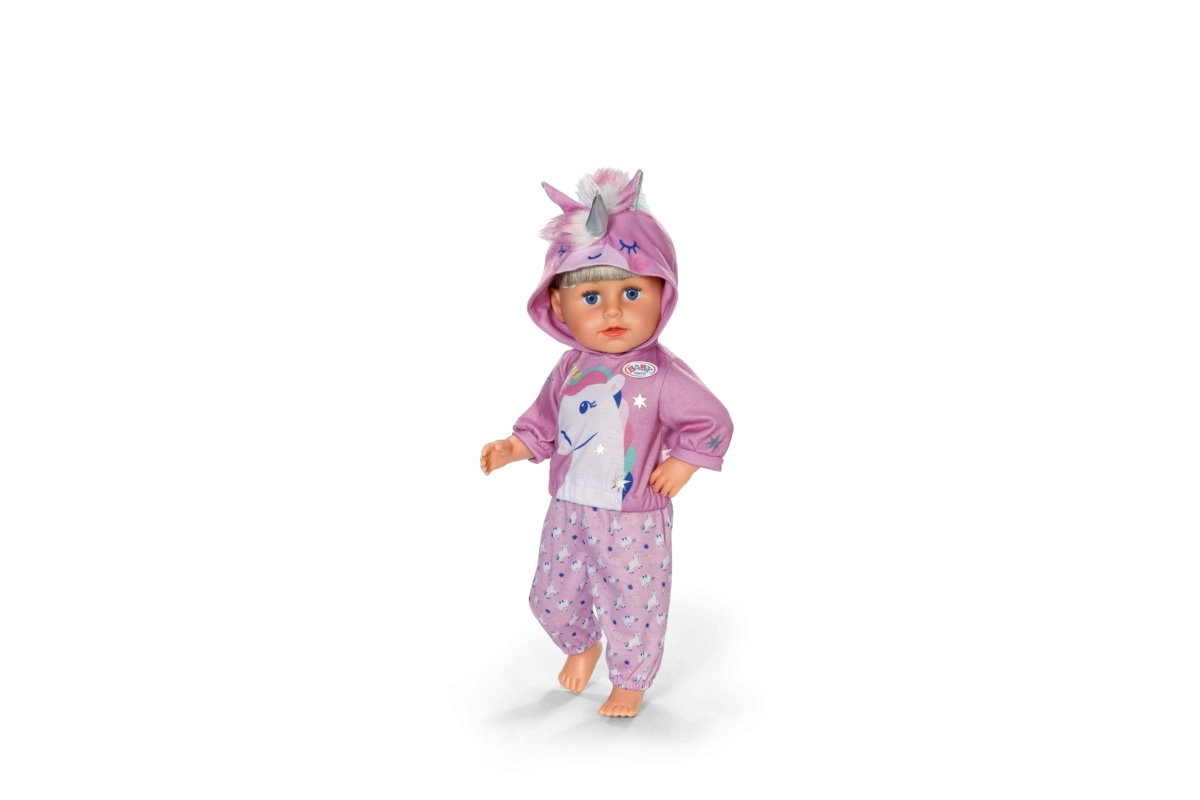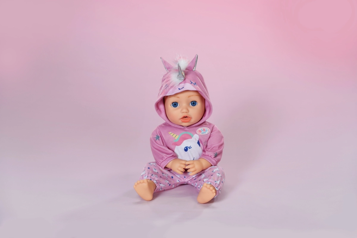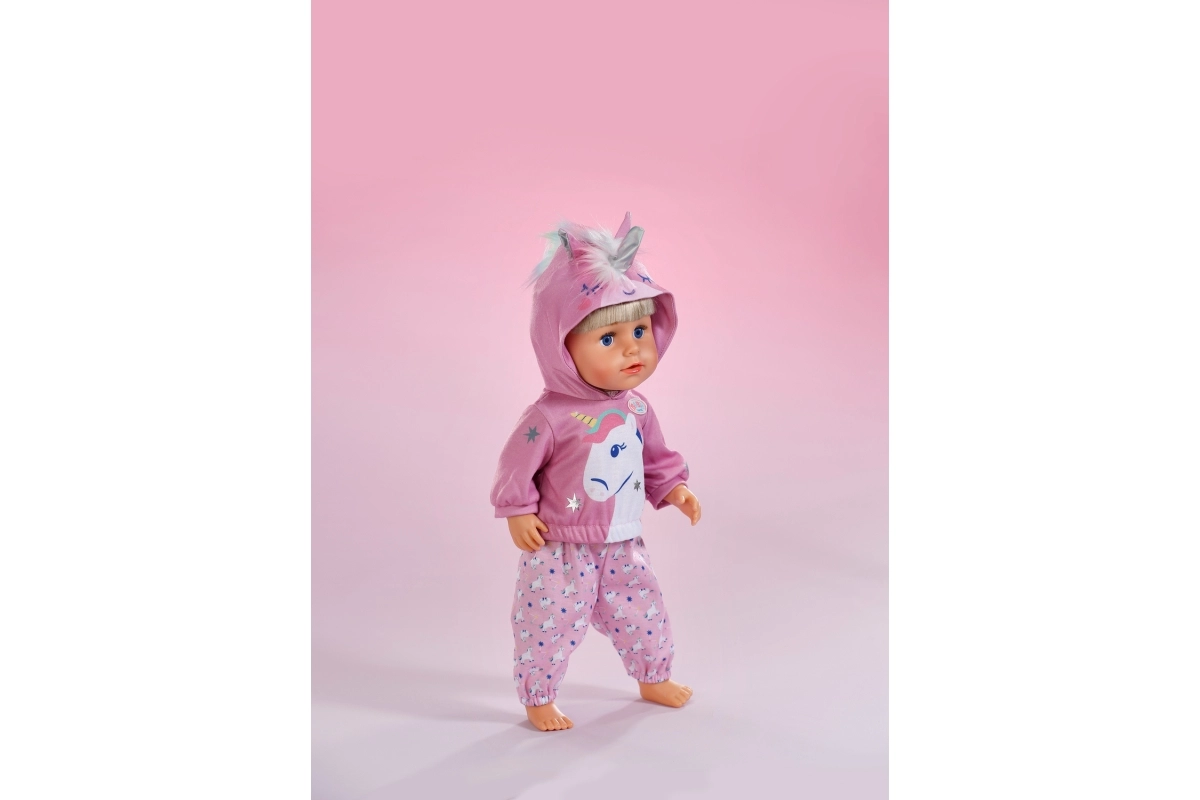 Dzieci docenią łatwe ubieranie easy fit, przyjemne materiały i pomysłowe detale, takie jak hafty oraz miękka „grzywa”. Ubranko świetnie leży na lalkach BABY born 43 cm i nadaje się do codziennej zabawy w domu i w podróży.