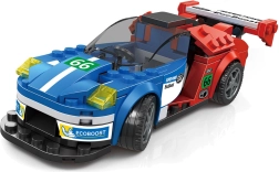 Ta techniczna zabawka konstrukcyjna wprowadzi małych pasjonatów w świat szybkich aut i mechaniki. Z elementów łatwo złożysz elegancki model wyścigowy w atrakcyjnym, niebiesko‑czerwonym zestawieniu barw. Stabilna konstrukcja i dekoracyjne naklejki pozwolą dzieciom spersonalizować auto według własnej wyobraźni.