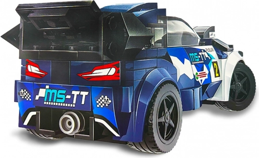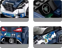 Ta techniczna konstrukcja przeniesie małych miłośników motoryzacji do świata szybkich aut i sprytnych mechanizmów. Dzięki eleganckiej niebiesko-biało-czarnej kolorystyce oraz dołączonym naklejkom dziecko stworzy własny sportowy samochód w oryginalnym stylu.
