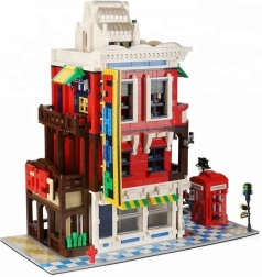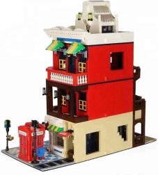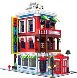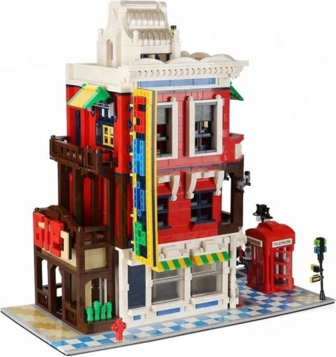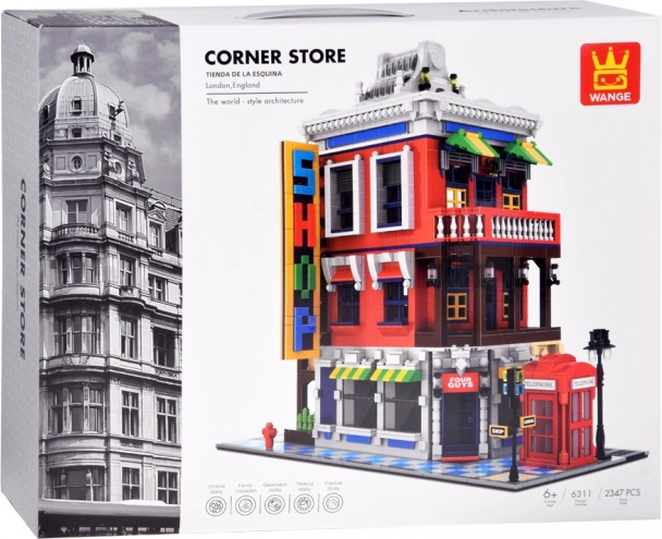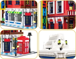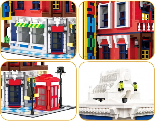 Model pełen jest ikonicznych dodatków: czerwona budka telefoniczna – symbol Wielkiej Brytanii, ulica ze znakiem dla realizmu sceny, ozdobny szyld oraz dopracowany dach, który podkreśla styl architektoniczny budynku.