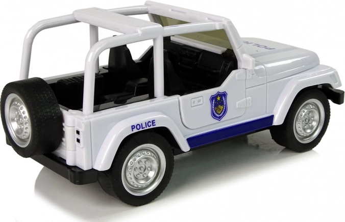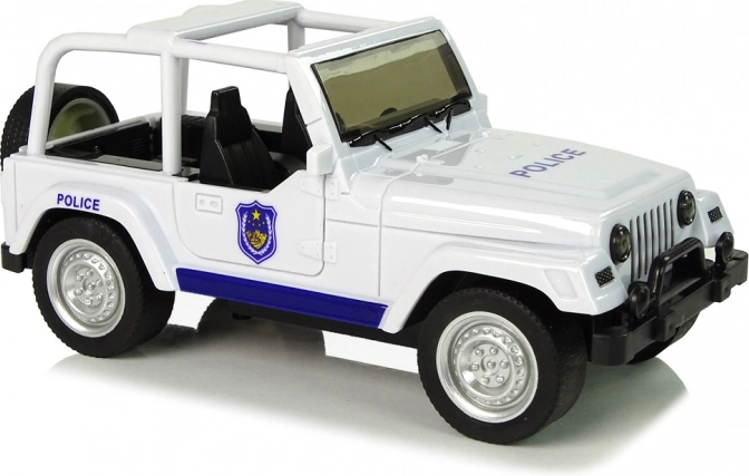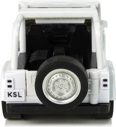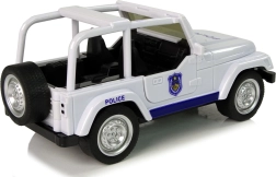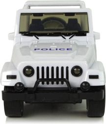 Zostań stróżem prawa i ruszaj do akcji! Białe terenowe auto policyjne to doskonały wybór dla dzieci kochających akcję i przygodę. Kompaktowe wymiary pasują do dziecięcej dłoni, a gumowe opony i napęd pull-back gwarantują świetną jazdę na krótkich dystansach. Auto ma otwierane przednie drzwi, dopracowane wnętrze oraz niebieskie elementy policyjne z napisem POLICE.