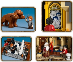 W zestawie znajduje się 12 minifigurek oraz figurki Puszka, Hedwigi i Fawkesa. Nie brakuje Lustra Ain Eingarp, Tiar y Przydziału i 6 kolekcjonerskich portretów z Hogwartu. Zestaw należy do modułowej serii LEGO HARRY POTTER – łącząc je, zbudujesz największy zamek Hogwart z LEGO.