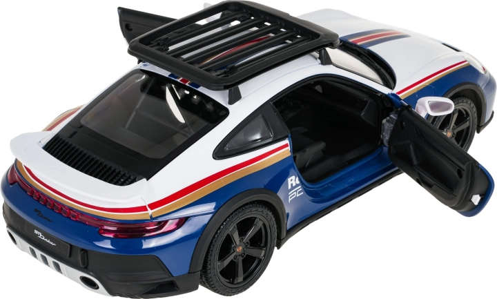 Wierne proporcje PORSCHE 911 Dakar, dopracowane wnętrze oraz funkcjonalne otwierane drzwi dla maksymalnej frajdy z jazdy i ekspozycji.
