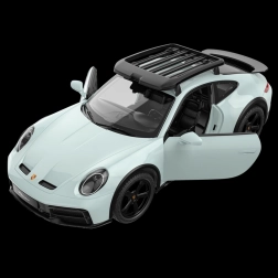 Ten licencjonowany model PORSCHE 911 Dakar w eleganckim, matowym, miętowym kolorze wykonano z wysokiej jakości plastiku ABS oraz pierwszorzędnych komponentów mechanicznych i elektronicznych. Wiernie odwzorowuje rzeczywisty pierwowzór i wyróżnia się szybką, precyzyjną jazdą oraz dopracowanym wnętrzem.