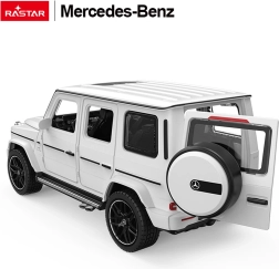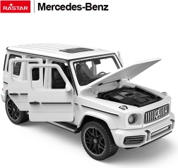 Szczegółowo wykonany metalowy model w skali 1:32 przedstawia kultowy MERCEDES‑BENZ AMG G63 marki Rastar. Oferuje metalowe nadwozie, gumowe koła, działające światła i dźwięki oraz otwieraną maskę i boczne drzwi. W zestawie znajdują się baterie LR44 oraz certyfikaty CE/EN71/RoHS.