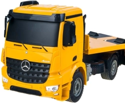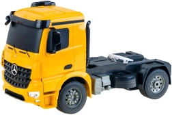 Ten szczegółowo wykonany model RC z licencją MERCEDES-BENZ jest idealny dla małych miłośników techniki. Ciągnik i naczepa są wyposażone w gumowe koła, świecą światła przednie i tylne, a podczas cofania aktywują się światła wsteczne i sygnał dźwiękowy. Realistyczny dźwięk silnika towarzyszy całej jeździe, potęgując wrażenia.