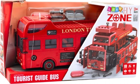 Piętrowy autobus do złożenia LONDON TRANSPORT ze światłami i dźwiękami. Otwierane drzwi, narzędzia i elementy w zestawie. Świetna kreatywna zabawa dla małych mechaników.