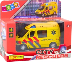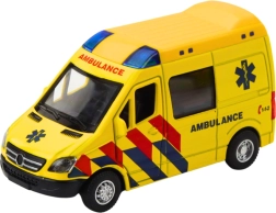 Realistyczna metalowa karetka w skali 1:32 łączy wytrzymałe wykonanie, napęd pull-back oraz efekty świetlne i dźwiękowe. Żółte wykończenie z napisem „Ambulance”, otwierane drzwi i kompaktowe wymiary sprawiają, że to świetna zabawka dla małych ratowników i kolekcjonerów.