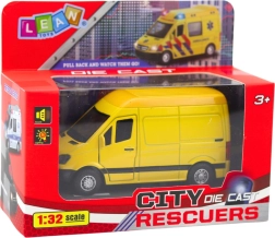 - metalowy van 1:32, 3× bateria AG13, oryginalne opakowanie