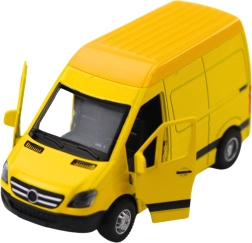 Realistyczny żółty van w skali 1:32 łączy metalowe elementy i wysokiej jakości plastik dla większej wytrzymałości i atrakcyjnego wyglądu. Oferuje napęd pull-back, otwierane drzwi oraz efekty świetlne i dźwiękowe, dzięki czemu idealnie sprawdzi się do zabawy i jako model kolekcjonerski.