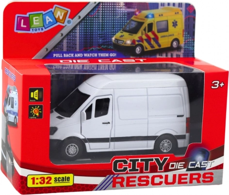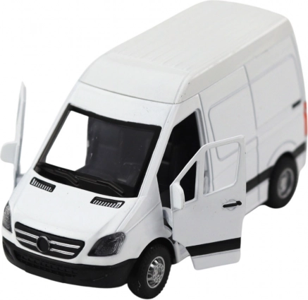 Realistyczny metalowy van w skali 1:32 ucieszy małych i dużych fanów. Oferuje napęd typu pull-back, otwierane drzwi oraz efekty świetlne i dźwiękowe. Wysokiej jakości połączenie metalu i plastiku gwarantuje trwałość, a biały minimalistyczny design pasuje do każdej kolekcji modeli.