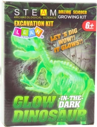 Ten zestaw archeologiczny to idealny wybór dla dzieci, które chcą przeżyć prawdziwe wykopaliska jak paleontolodzy. W gipsowej kostce znajduje się świecący szkielet dinozaura, który można ostrożnie odsłonić, a następnie złożyć w kompletny model. Efekt świecenia w ciemności zwiększa atrakcyjność zabawy i pobudza wyobraźnię.