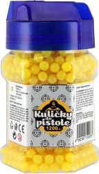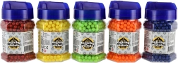 Zapasowe plastikowe kulki o średnicy 6 mm do dziecięcych pistoletów – idealne do zabawnego strzelania do celu. Opakowanie zawiera 1200 lekkich kulek w praktycznej buteleczce z zamknięciem dla łatwego dozowania i przechowywania. Kulki są dostępne w miksie kolorów i są odpowiednie do standardowych zabawek–pistoletów.