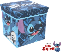 Stylowe pudełko do przechowywania z licencjonowanym motywem STITCH łączy sprytne przechowywanie i wygodne siedzenie w jednym. Składana konstrukcja umożliwia szybkie rozłożenie i złożenie na płasko, aby oszczędzić miejsce, a solidna pokrywa gwarantuje bezpieczne siedzenie dzieci i dorosłych. Standardowy sześcienny kształt 30 × 30 × 30 cm idealnie pasuje do większości drewnianych organizerów.