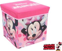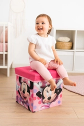 Wzbogać pokój dziecka o praktyczny i zabawny element z motywem MINNIE MOUSE. Ten składany pojemnik z solidną pokrywą sprawdzi się nie tylko do przechowywania zabawek, książeczek czy klocków, ale także jako wygodna pufa do siedzenia. Dzięki kształtowi sześcianu i standardowym wymiarom pasuje do większości drewnianych organizerów i regałów.