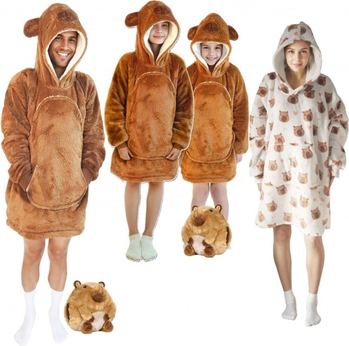 Urocza poduszka–maskotka kapibara od Cozy Noxxiez łączy trzy funkcje w jednym: mięciutką poduszkę, mufkę do ogrzewania dłoni oraz pluszowego towarzysza. Ma po bokach dwa otwory na dłonie, jest idealna w podróży i świetnie uzupełni dziecięcy pokoik.