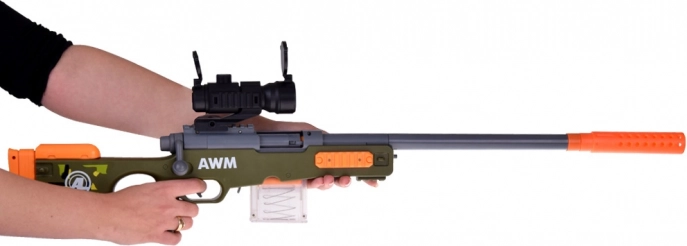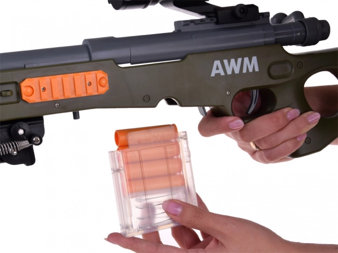 Duża dziecięca strzelba snajperska na piankowe naboje zapewnia imponująco realistyczne wrażenia. Po każdym przeładowaniu z komory wypada „łuska” jak w prawdziwej broni, co dodaje zabawie autentyczności. Karabin jest w całości z plastiku, dzięki czemu jest bardzo lekki i wygodny w trzymaniu, a dzieci mogą cieszyć się zabawą przez długie godziny.