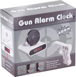 Uprzyjemnij sobie poranne wstawanie dzięki oryginalnemu rozwiązaniu: budzikowi z pistoletem i tarczą. Po uruchomieniu alarmu wystarczy wycelować i „strzelić” w tarczę, aby go wyłączyć. Oferuje dwa tryby gry, możliwość nagrania własnego alarmu oraz czytelny wyświetlacz LCD. Zasilanie bateriami AA lub przez micro USB (kabel nie jest w zestawie). Świetna zabawa i skuteczne przebudzenie w jednym.