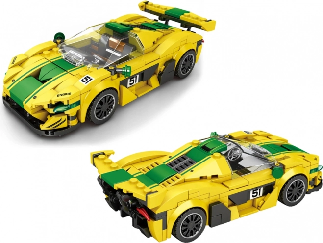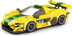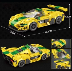 Model zachwyca niską, wyścigową sylwetką, szerokimi nadkolami i wyrazistym tylnym spojlerem, co nadaje mu autentyczny wyścigowy wygląd. Kontrastowy szeroki zielony pas podkreśla dynamiczne linie i dodaje autu agresywnego charakteru.