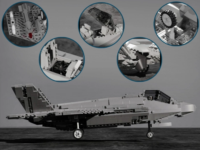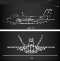 Zbuduj realistyczny model nowoczesnego wielozadaniowego myśliwca F-35 LIGHTNING II z 1600 elementów. Zestaw oferuje otwieraną kabinę, ruchome podwozie oraz otwieraną tylną część, a także wyrzutnię pocisków i odłączaną podstawkę ekspozycyjną. Idealny dla miłośników lotnictwa i technicznych zestawów konstrukcyjnych od 14 lat.