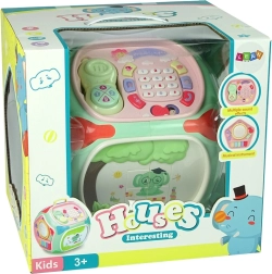 Interaktywna edukacyjna kostka z sorterem, telefonem i pianinkiem