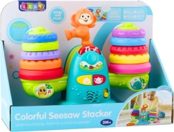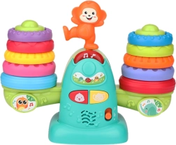 Interaktywna waga w kształcie uroczej lwiej główki uczy dzieci zasad ważenia i równowagi. Ramiona kołyszą się w zależności od liczby i ciężaru położonych krążków, co naturalnie rozwija logiczne myślenie i podstawowe pojęcia matematyczne. Kolorowe elementy o różnych rozmiarach zachęcają do sortowania, porównywania i układania.