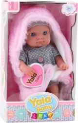 Ta urocza lalka–niemowlę w szarych piżamkach zachwyca realistycznym wyglądem i przyjemnymi materiałami. Głowa, rączki i nóżki z miękkiej gumy sprawiają autentyczne wrażenie, a materiałowe ciałko jest lekkie i idealne do przytulania. W zestawie znajduje się różowy kocyk z uszkami króliczka, który poszerza możliwości zabawy – jako kołderka, nosidełko lub mini namiot.