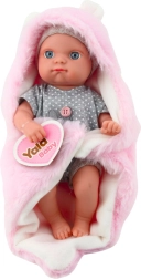 - Lalka–niemowlę; różowy kocyk z uszkami króliczka