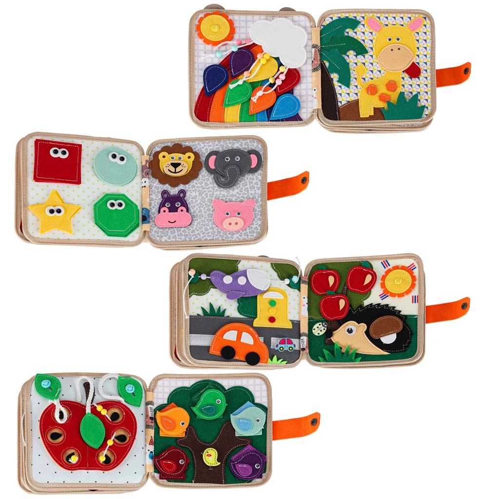 Ta sensoryczna i edukacyjna książeczka z miękkiego filcu oferuje dzieciom zabawną formę nauki. Odpinane i ruchome elementy na rzep lub napy zachęcają do interakcji, trenują koordynację ręka–oko i rozwijają małą motorykę. Dzięki żywym kolorom i różnorodnym motywom dzieci uczą się rozpoznawać kolory, kształty, zwierzęta oraz zjawiska w przyrodzie.