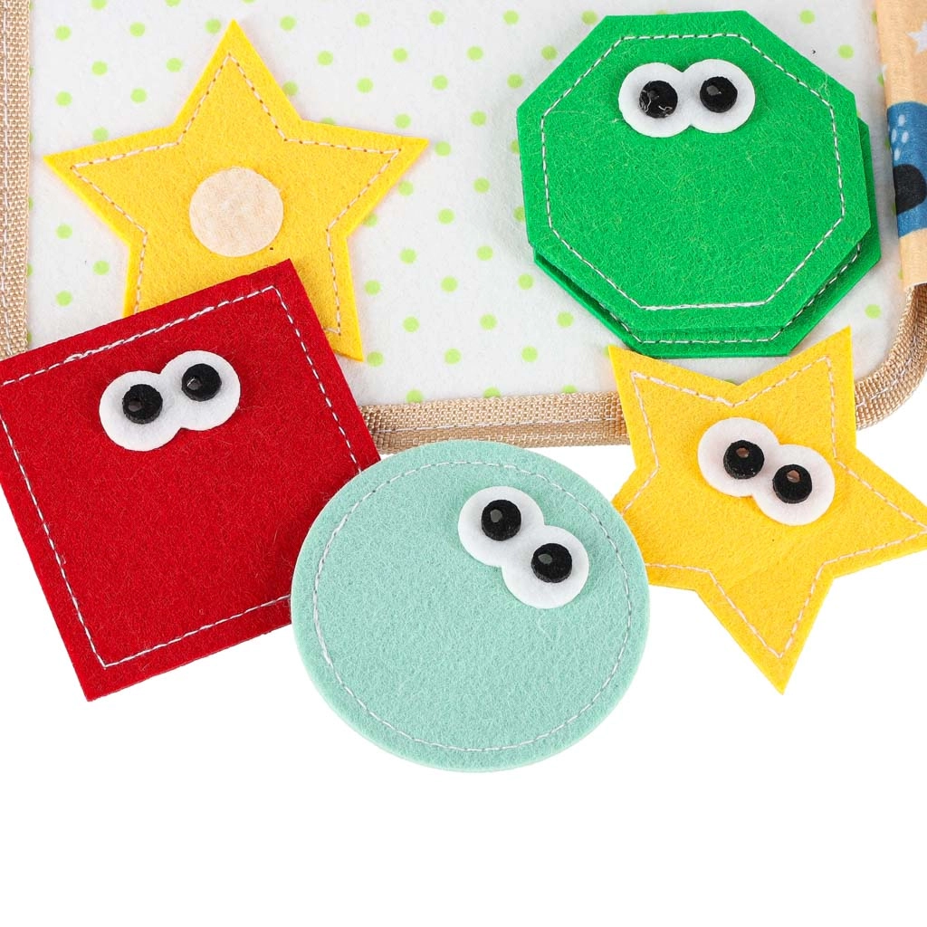 • Przyjemny materiał dotykowy – miękki, kolorowy filc zachęca do odkrywania.