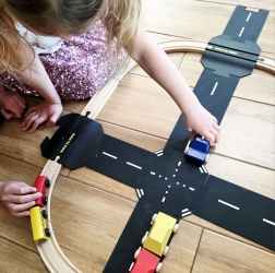 Praktyczny dodatek do zestawów Miasto i Metropolia oferuje uniwersalne rozwiązanie w postaci dwustronnych elementów: z jednej strony małe rondo, z drugiej skrzyżowanie X. Dzięki temu dzieci łatwo zmieniają kierunek jazdy, łączą trasy i tworzą nowe scenariusze zabawy w domu i na zewnątrz.
