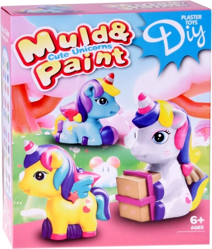 Kreatywny zestaw do odlewania i malowania gipsowych jednorożców. Proste odlewy 3D, 8 kolorów, pędzle i formy w zestawie. Wspiera kreatywność i małą motorykę.